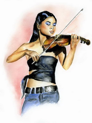 Titel: "Vanessa Mae" Technik: Aquarell Künstler: Anke Format: 21 x 30 cm Preis: 60,- € |
