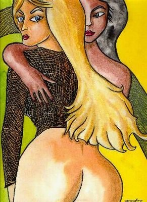 Titel: "Girl Friends" Technik: Aquarell Mischtechnik Künstler: Sugar Format: 32 x 27 cm Preis: 60,- € |