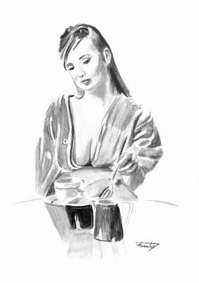 Titel: "Café au Lait" Technik: Aquarell Künstler: Sugar Format: 21 x 30 cm Preis: 60,- € |