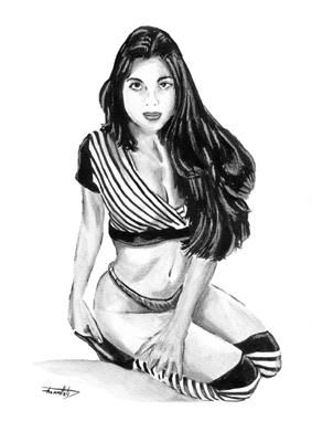 Titel: "Bettie Page" Technik: Aquarell Künstler: Sugar Format: 21 x 30 cm Preis: 60,- € |